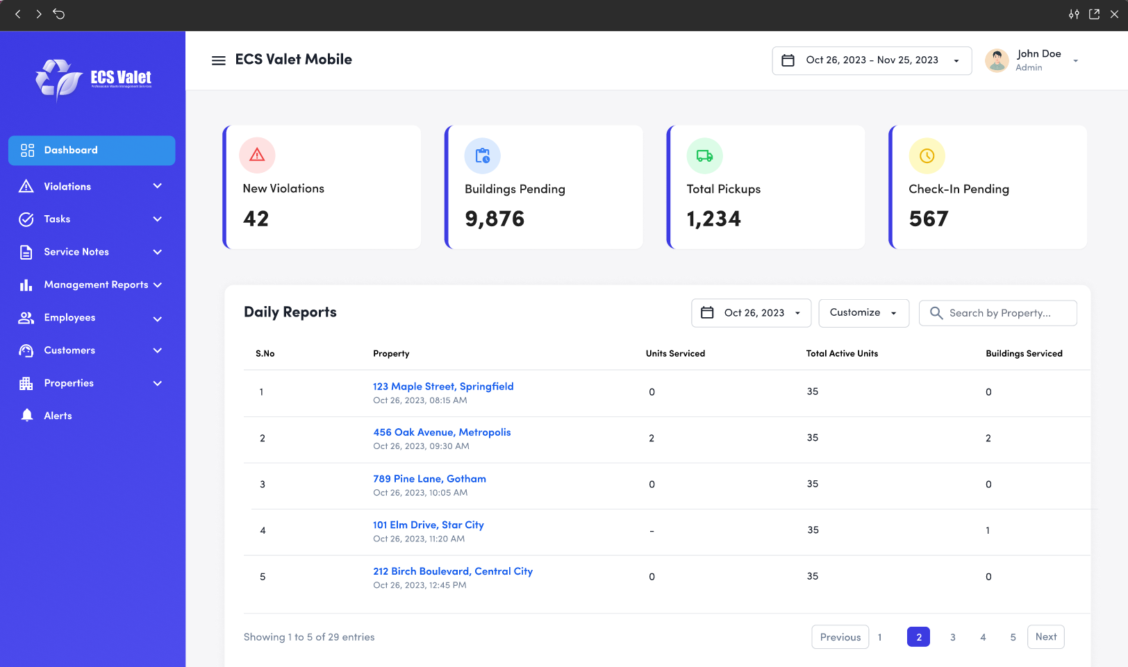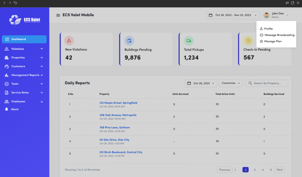 ECS Valet Mobile is an all-in-one Valet Trash Software platform built specifically for valet trash business owners. It helps you track crews, document pickups with photos, optimize routes, manage issues, and oversee multiple properties from one system.